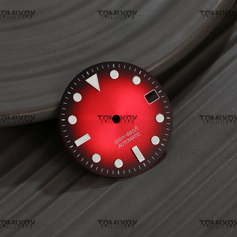 28.5mm Red Single Calendar Window Watch Dial Fit For S-k-x 6105 007 NH35 NH36 Automatic Movement Watch